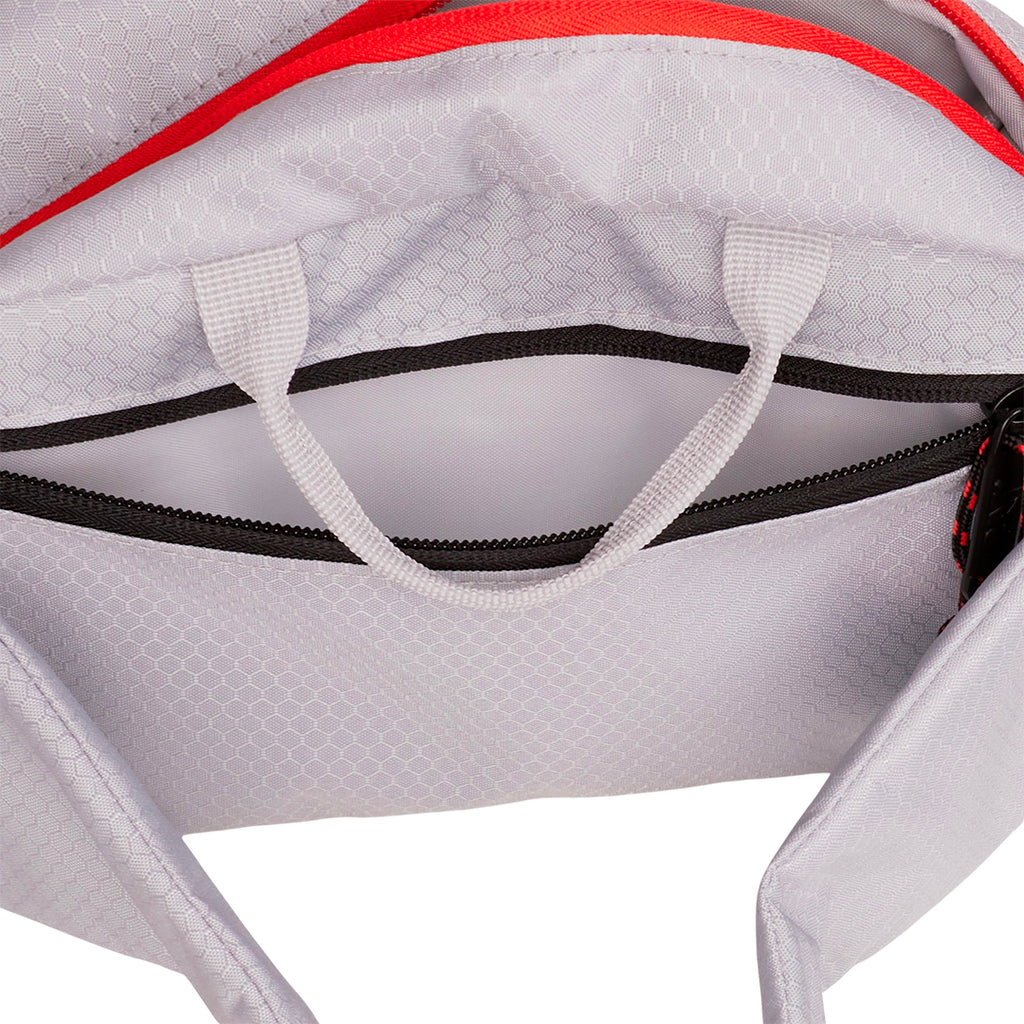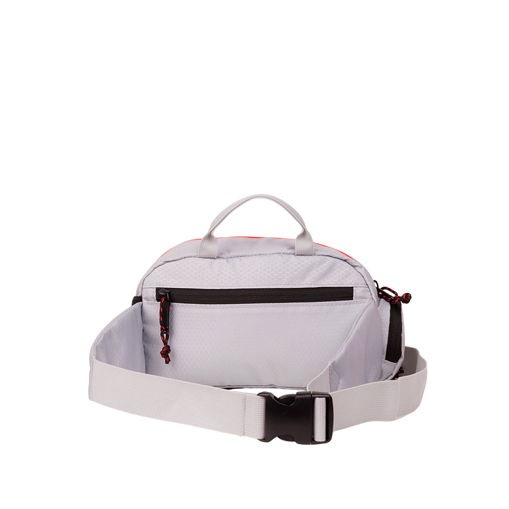 Cangurera de 3 L fabricada en poliéster 300D hexagonal ripstop, con medidas de 24 x 15 x 10 cm y peso de 0.22 kg. Cuenta con cinturón ajustable con hebilla de liberación rápida, bolsillo frontal con flap y parche Hypalon para luz de bicicleta, bolsillo lateral con cremallera, bolsillo lateral de malla elástica, detalles reflectantes y logo reflectante para mayor seguridad.