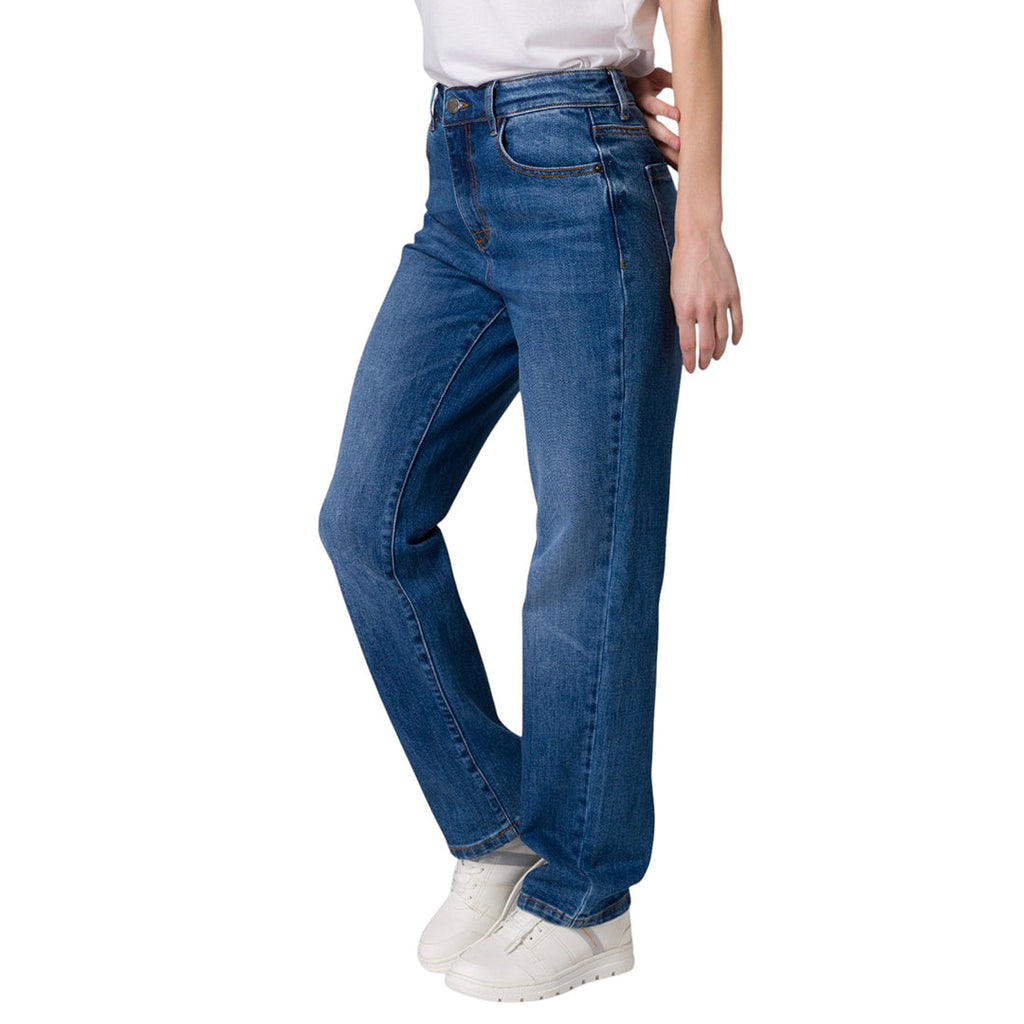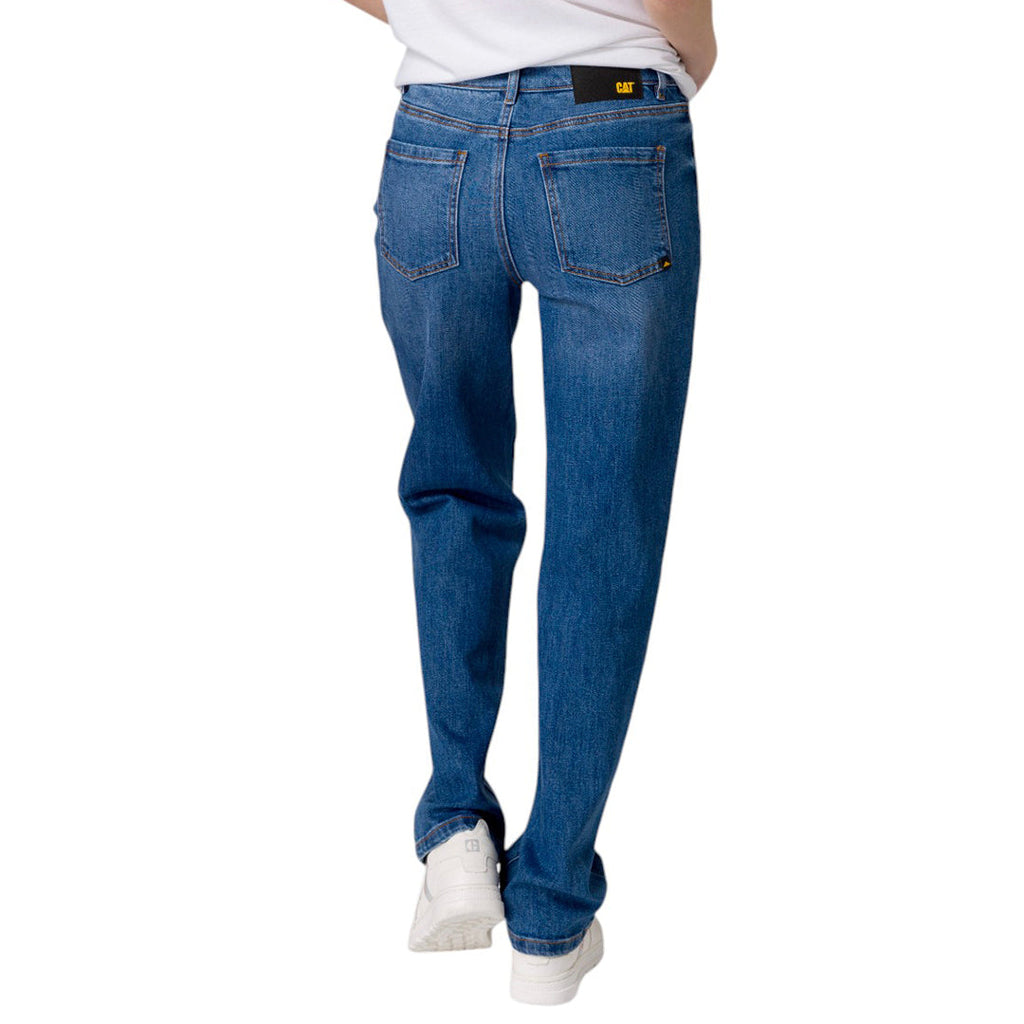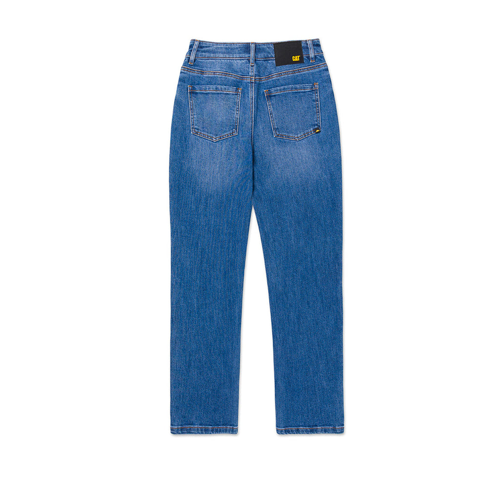 Jeans de tiro alto y corte recto, atemporales y resistentes, con silueta limpia y raíces workwear, confeccionados en denim duradero con diseño clásico de cinco bolsillos y detalles Cat® como remache con logo, parche Cat® en la cintura trasera y etiqueta triangular en el bolsillo trasero, con cierre de cremallera y broche con logo.