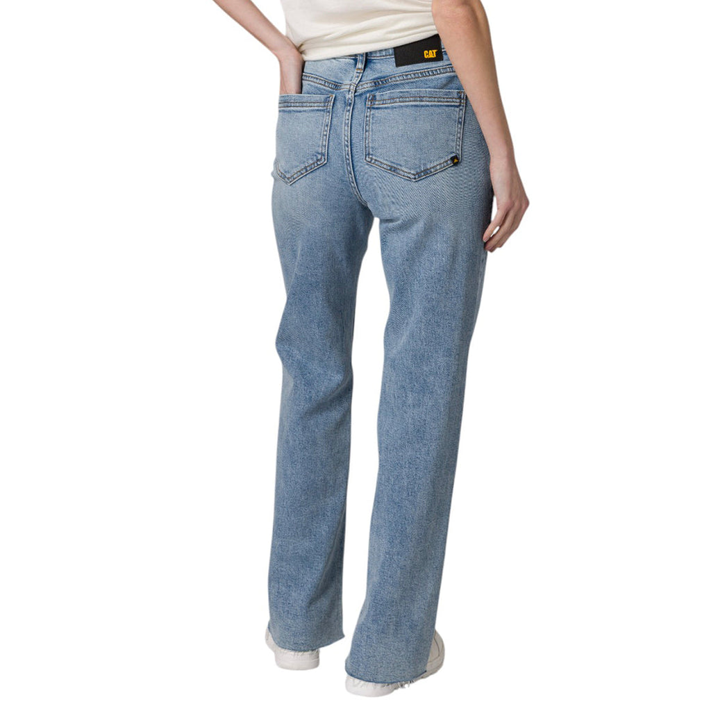 Un guiño moderno a la ropa de trabajo vintage. Estos jeans de tiro alto estilo stovepipe están cortados para uso diario, confeccionados en resistente denim, con pierna recta y los detalles distintivos de Cat®. Cierre de cremallera con botón de marca, diseño de 5 bolsillos, remache con logo en el bolsillo de mano, parche Oxford Cat® en la cintura trasera y etiqueta triangular en el bolsillo trasero.