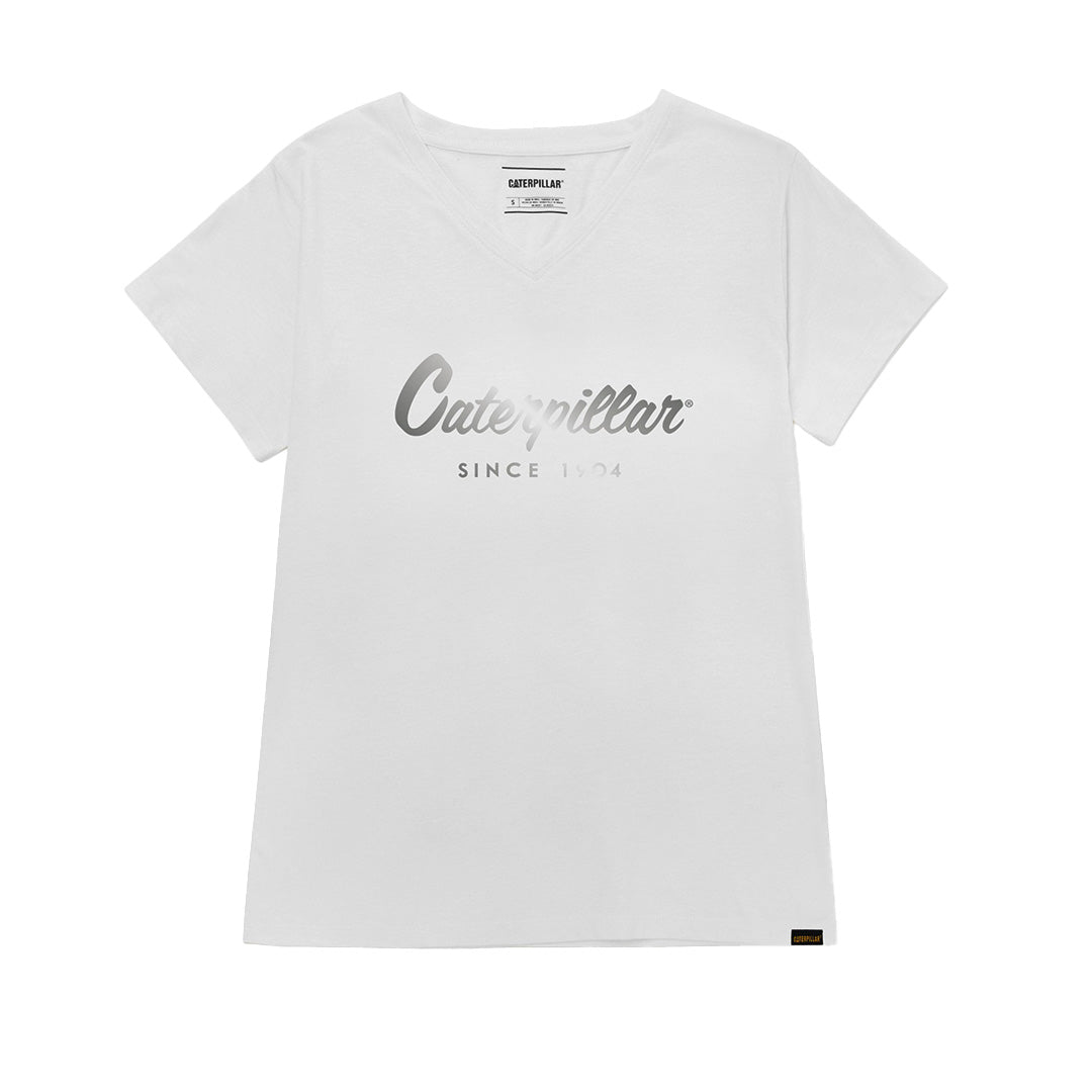 Una versión audaz de un básico. Esta camiseta de cuello en V luce un gráfico metálico que captura la luz y atrae todas las miradas: fácil de usar, imposible de pasar desapercibida.