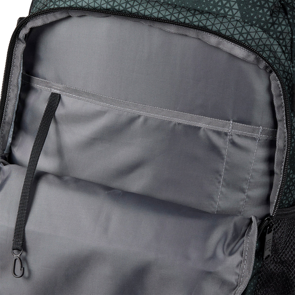 La mochila de 31 L está fabricada en poliéster de alta densidad 600D (100%) y mide 31 x 47 x 18 cm con un peso de 0.709 kg. Incluye compartimento principal espacioso con correas de compresión, bolsillo trasero acolchado para laptop, organizador frontal con porta bolígrafos y llavero, bolsillos laterales de malla y D-ring de marca. Su panel trasero y correas acolchadas en airmesh brindan comodidad en el uso diario.