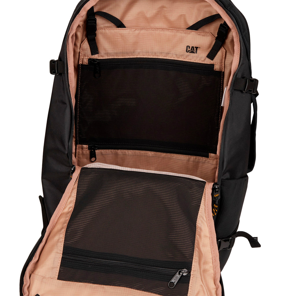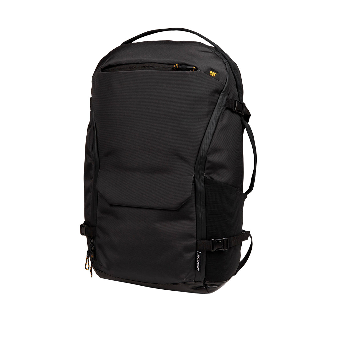 Mochila de 30 L fabricada en poliéster RPET 900D reciclado con PU, con medidas de 32 x 52 x 15 cm y peso de 1.14 kg. Cuenta con compartimento principal espacioso, funda para laptop con acceso desde el panel trasero, bolsillo frontal con cierre magnético, panel trasero y tirantes acolchados en airmesh, función expandible, base resistente al agua y correa trasera para trolley, además de tirantes ajustables y hebilla de esternón para mayor comodidad.