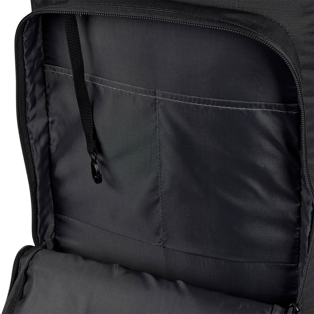 Mochila de 25.5 L fabricada en poliéster reciclado 450D Ripstop, con medidas de 31 x 46.5 x 16.5 cm y peso de 0.485 kg. Dispone de compartimento principal con bolsillo forrado, bolsillo frontal con organizador y llavero, bolsillos laterales de malla, detalles de cordones y logo reflectante para mayor funcionalidad y estilo.