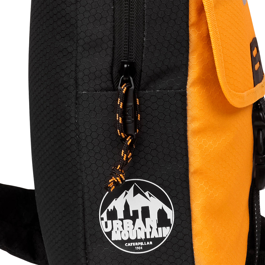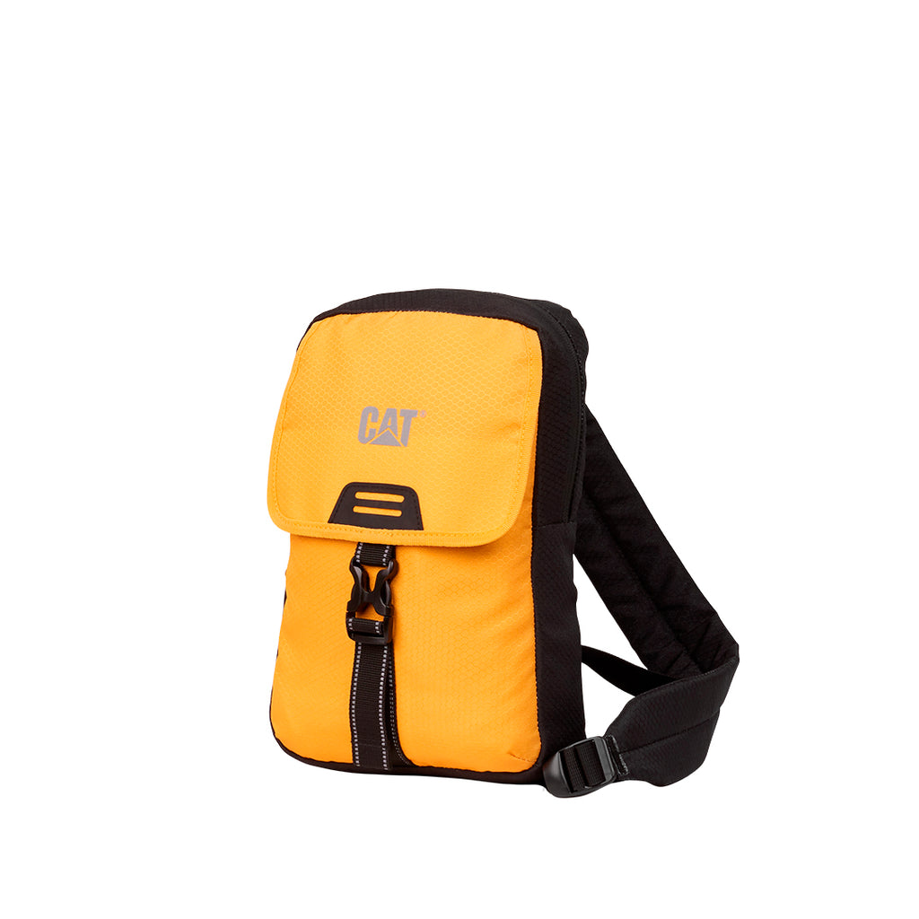 Bolso de 4 L fabricada en poliéster 300D hexagonal ripstop, con medidas de 18 x 29 x 6 cm y peso de 0.185 kg. Incluye compartimento principal con bolsillo interior, flap frontal, elementos reflectantes en logo y webbing, parche Hypalon y etiqueta tejida Caterpillar para mayor estilo y visibilidad.
