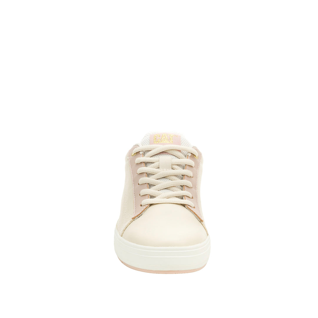Calzado con capellada de cuero metalizada y microfibra, ajuste con cordones, forro y forro interior 100% textil reciclado postindustrial, y plantilla de espuma de poliuretano moldeada para mayor comodidad; incorpora suela 100% de goma para una pisada firme y duradera.